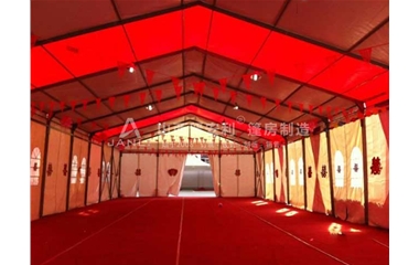 晋安利篷房厂家的篷房属于弹性建筑,也称之为柔性建筑。 篷房由于自重较轻,结构设计上突出了柔性约束的形式,抛弃了传统上的固结柱脚,采用了铰接的连接方式,在抵御风荷载上, 通过柱底铰链的转动达到消耗风能量的作用,而使整体 结构不会发生破坏。通创篷房出租抗风性能:6-10,搭建简易。
